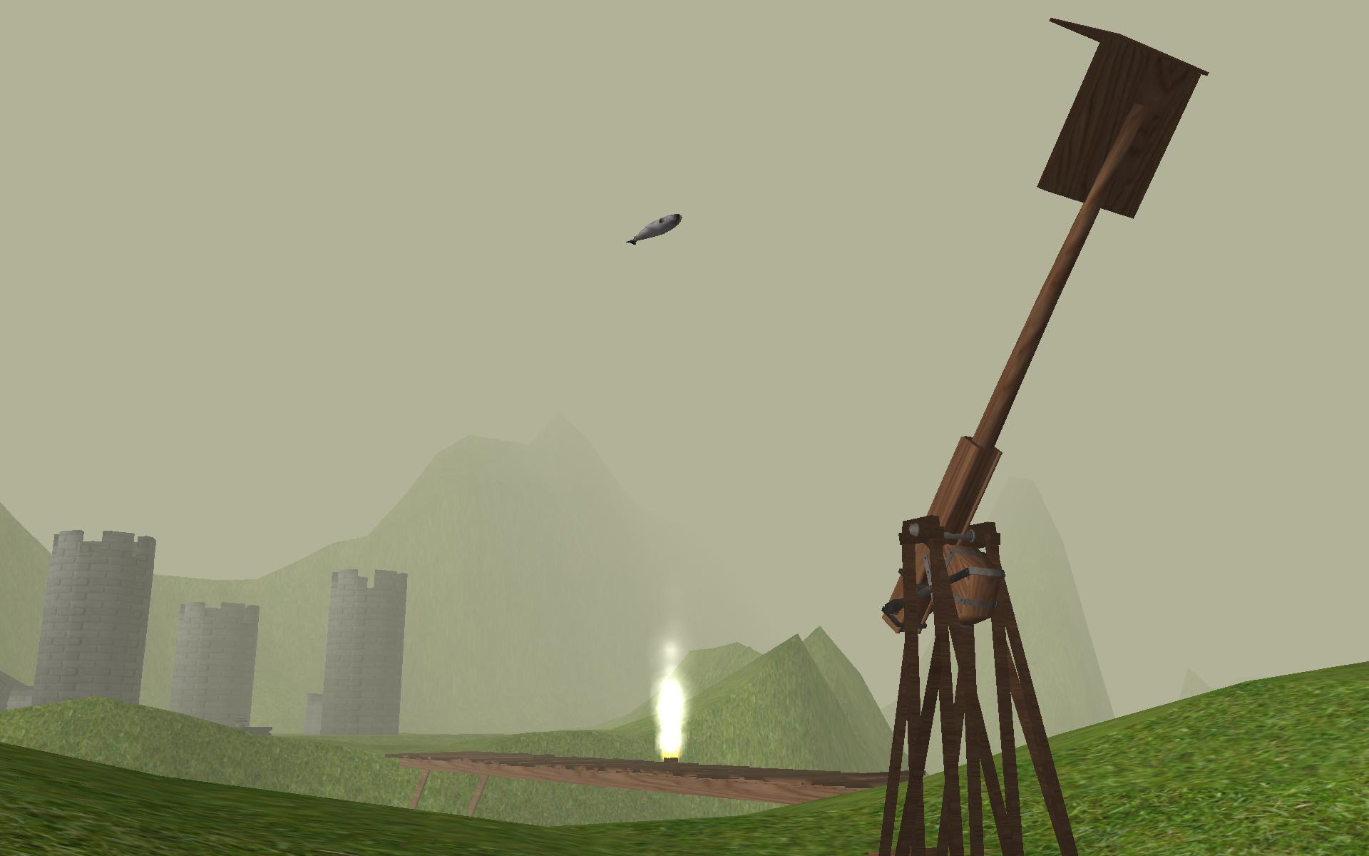 In Medieval Playground you can explore the world and interact with it physically. Climb on the castle ruins. Pick up a loose board on the bridge and drop it into the water below. Pile loose objects on the catapult and launch them at the castle... even launch yourself if you want. Swim along the water surface with the floating debris. Dive underwater to see fish schools (using a physics-based variant of the boids flocking algorithm). Even grab a fish and carry it away, forcing the rest of the school to follow you. Download it and try it out!