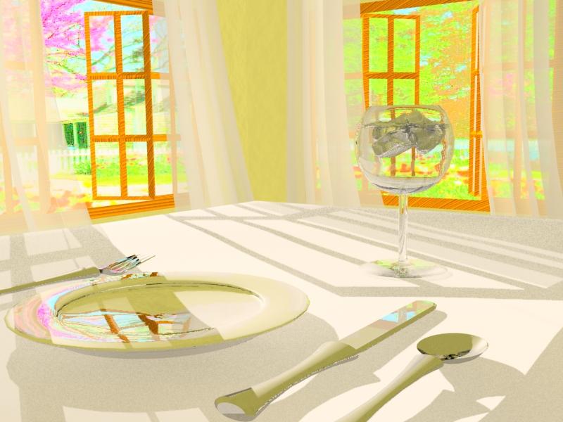 A 3D animation I made using 3D Studio Max 5.1. This was a project for a 3D modeling class taught by Dr. Steven Herrnstadt. The assignment was simply to create some kind of morning scene. In my animation a peaceful breakfast nook is interrupted by a wayward baseball.