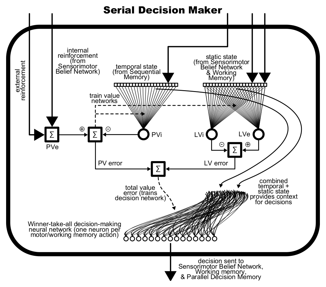 Generally, reinforcement learning is a great framework for designing intelligent machines which must learn from trial and error. However, it is only as effective as the machine's representation of the world. Thus, most of my research effort since 2006 has been focused on engineering an effective context representation, the internal representation of the outside world. In the brain this corresponds to the cerebral cortex. The system described here combines these two important aspects (a learned internal representation and reinforcement learning) with several other components in a brain-inspired architecture.