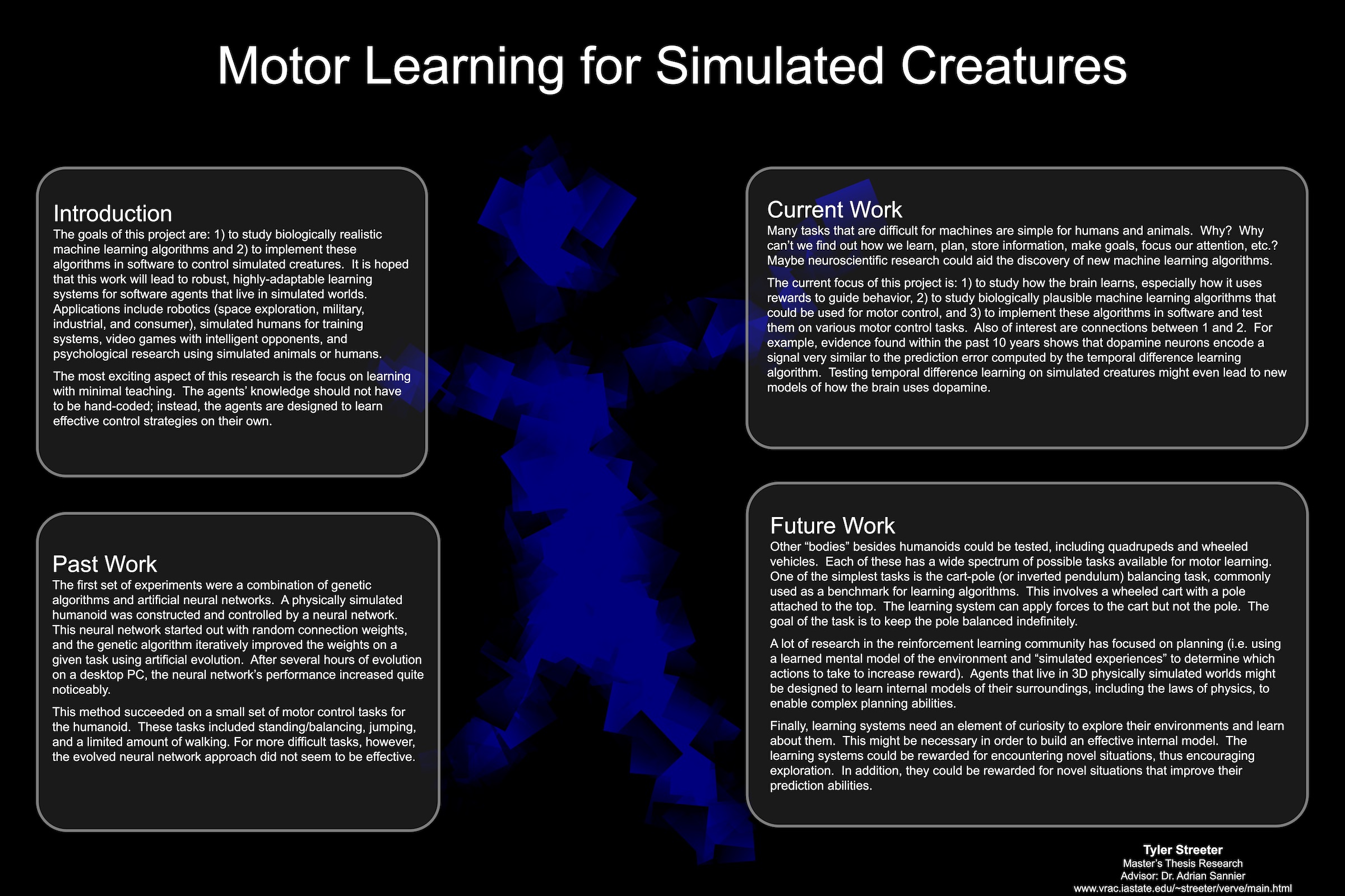 Apr 2005. Motor Learning for Simulated Creatures. HCI Forum, Ames IA. Poster. [jpg, link]