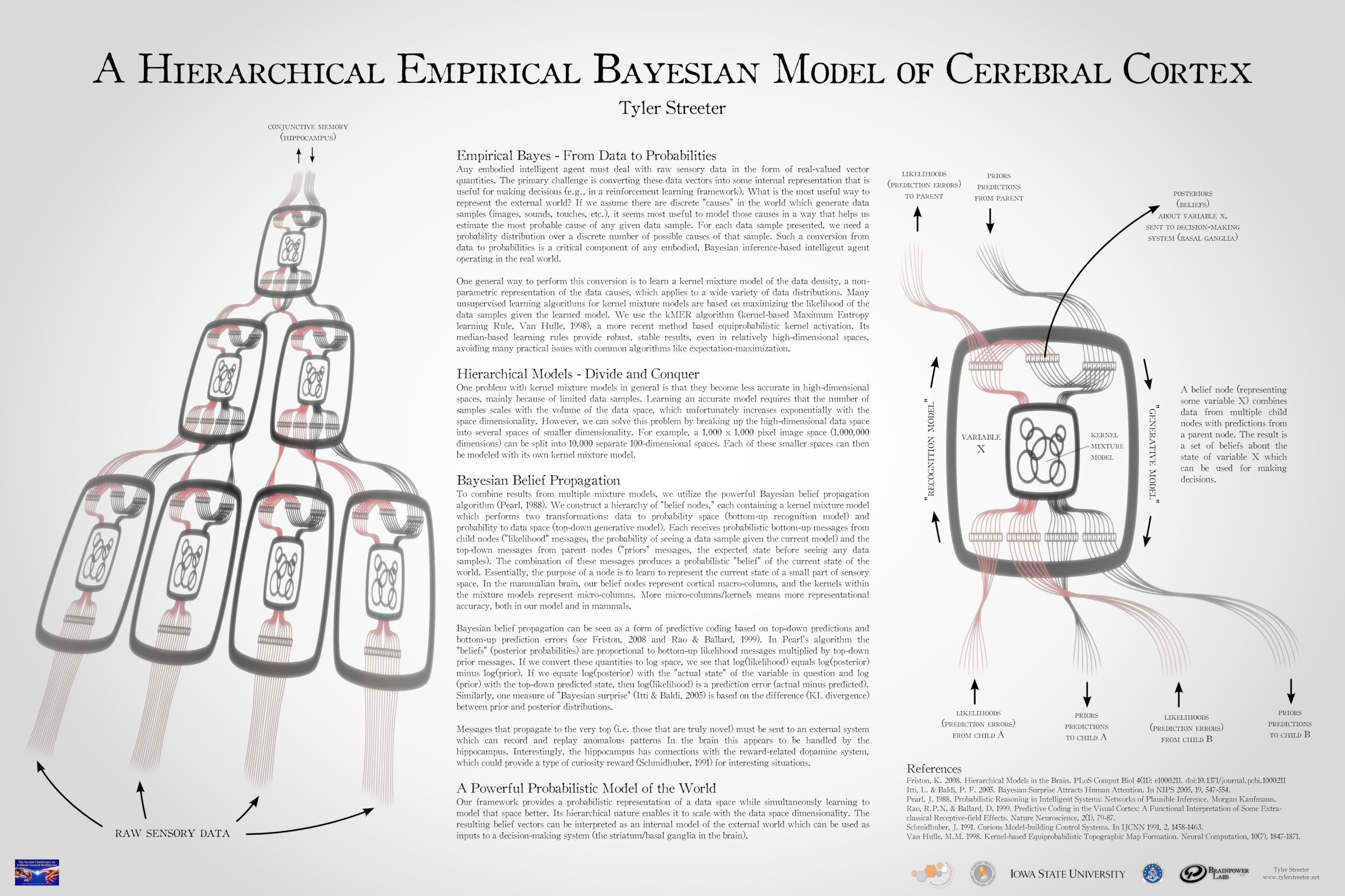 Mar 2009. A Hierarchical Empirical Bayesian Model of Cerebral Cortex. The 2nd Conference on Artificial General Intelligence, Arlington VA. Poster and demo. (Presented again in Mar 2009 at Emerging Technologies Conference, Ames IA.) [jpg, link]