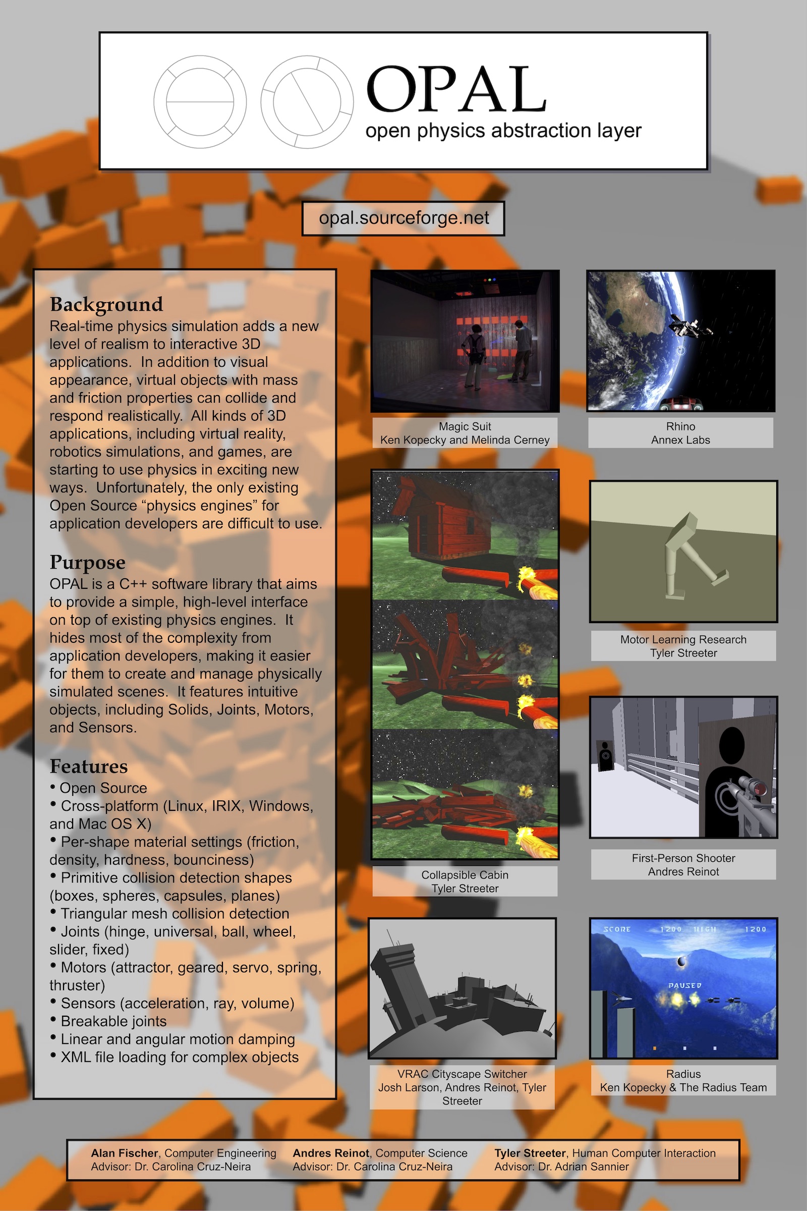 Apr 2005. OPAL: Open Physics Abstraction Layer. HCI Forum, Ames IA. Poster and demo. [jpg, link]